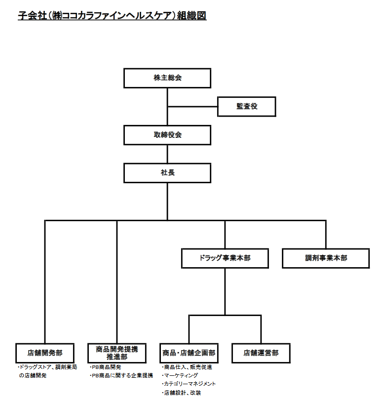 同日、子会社(株)ココカラファインヘルスケアの組織変更も行う。