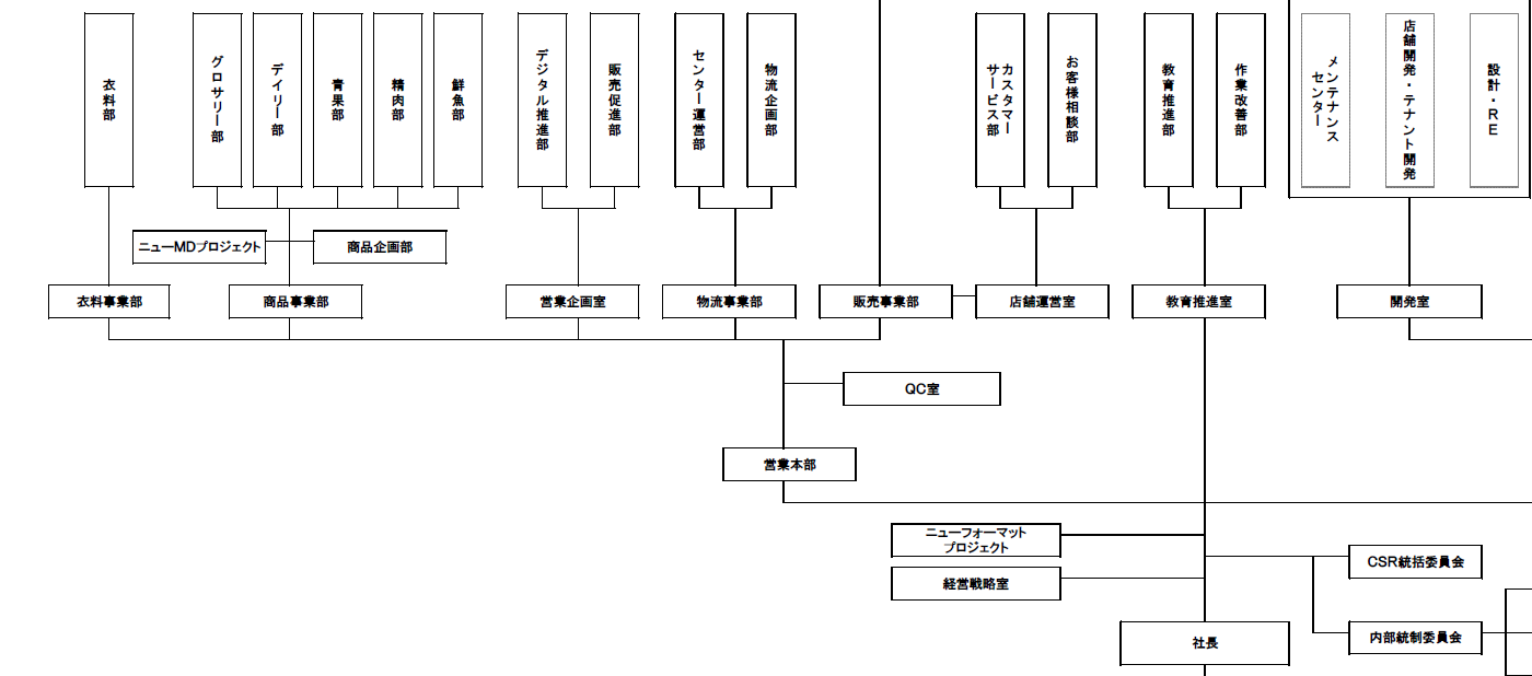 経営戦略室とニューフォーマットプロジェクトは社長直下の組織になる。