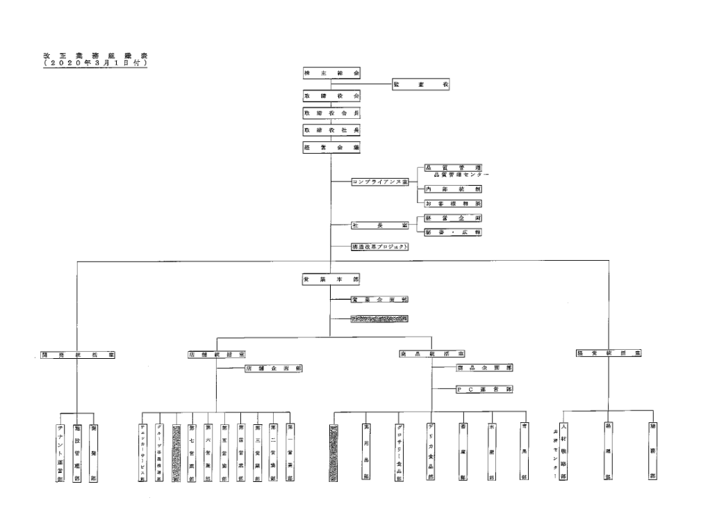 組織改正の目的は、第1に、「MD改革」によるマーケティング体制の抜本的な再構築を図り、既存顧客および非利用者の購買行動変化にスピーディかつ的確に対応して販売力、商品力の強化を図る。第2に、デジタル販促ツールなどのIT技術進化に対し、機動的に対応するために店舗システムへの支援体制の一元化を行う。第3に、出店機会の拡大が予想される小型店業態において、その運営管理に特化した体制を構築する。