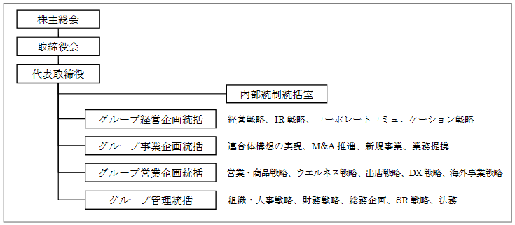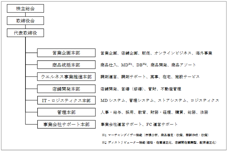 (株)マツモトキヨシグループ(新設分割会社)の組織新体制は、統合後のマツモトキヨシグループに属する各事業会社を統括する中間持株会社として、経営管理及び営業管理機能に別けて管理統括する体制とする。