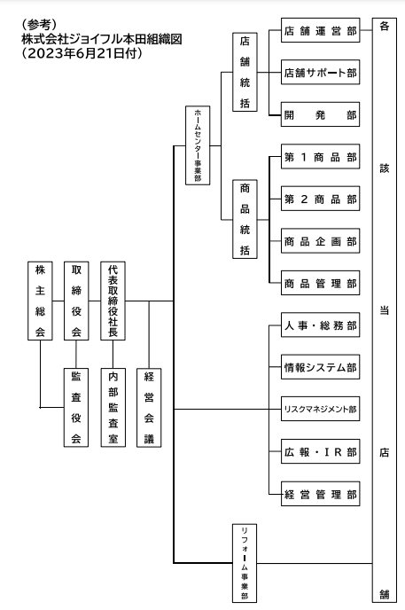 ジョイフル本田news|6/21付組織変更/ホームセンター・リフォーム2事業制へ