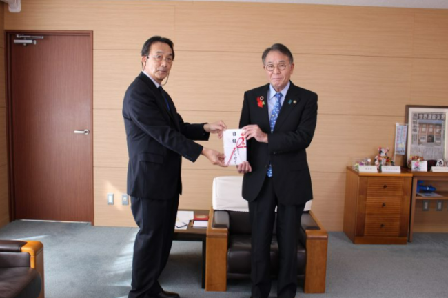 この寄附金は、「地域を担う人材を育成する事業」小中学校体育館の照明LED化事業に活用される。
