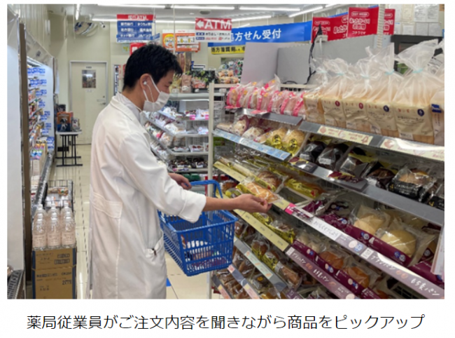 また、オンライン服薬指導の利用者の中には「体調が悪くて薬を取りに行けない」「忙しくて時間がない」等の事情がある事を踏まえ、服薬指導の際、薬剤師に飲料やティッシュペーパーなどの食品や日用品などを注文し、一緒に配送する。