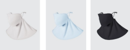 顔、デコルテ、首後ろ、目尻までしっかりカバーする。接触冷感素材を採用しているので、暑い日でも快適に紫外線対策ができる。カラーはライトグレー・ブラック・ブルー、価格は1500円。