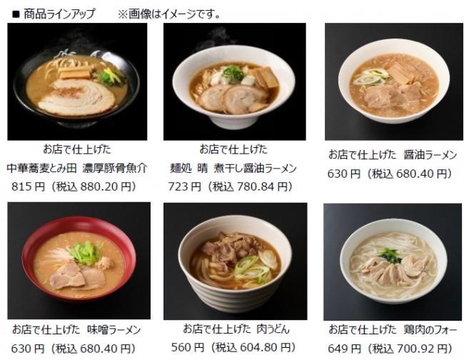 商品は中華蕎麦とみ田 濃厚豚骨魚介(815円 税抜 以下同)、味噌ラーメン(630円)顧客は発券機で商品を選択、レジでの精算後、売場の冷凍ケースから商品を取り出して、商品のQRコードを読み取り、顧客自身で商品をマシンにセットする。タッチパネルの「OK」ボタンを押すと、約90秒でできあがる。