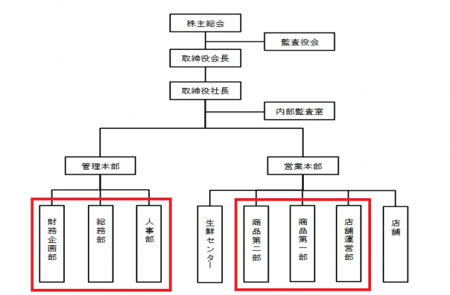 ・営業本部の5部(店舗運営部、商品第一部、商品第二、商品第三部、商品第四部)を3部(店舗運営部、商品第一部、商品第二部)に再編する。