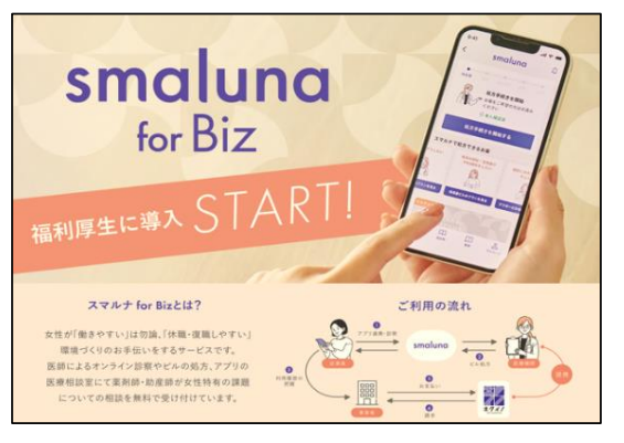 また月経痛やPMS(月経前症候群)等といった女性特有の症状や課題に取り組むために、(株)ネクイノが提供するオンライン受療支援サービス「スマルナ for Biz」を導入して、従業員とその家族(配偶者および一親等の血族まで)を対象に、低用量ピル服用にかかる費用の全額補助を開始する。