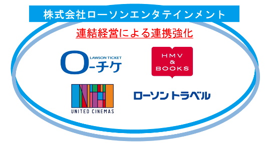 同社では「ユーザー360°エンタメサービス」をビジョンに掲げ、既存事業の拡大、事業領域の拡大、サービスの拡充に取り組んでいる。今回、既存事業の「ローソンチケット」「HMV&BOOKS」と、子会社のシネコン事業会社(株)ユナイテッド・シネマや旅行事業の(株)ローソントラベルとの連携を強化し、エンタメ総合企業でのさらなる成長を目指す。
