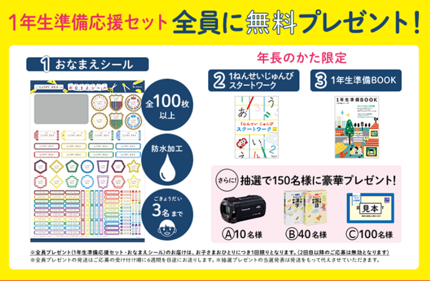 さらに応募者から抽選で、ビデオカメラ、国語・漢字辞典セット、3000円分図書カードを総勢150名にプレゼントする。