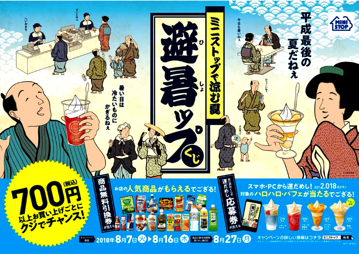 「避暑ップくじ」は、平成最後の夏に、ミニストップを避暑地に見立てて、ファストフードなどで涼んでほしいという意図がネーミングに込められている。キャンペーンを盛り上げるために、人気イラストレーター山田全自動氏が書いた粋なイラストが採用されている。このイラストはちょっと、話題になりそうだ。