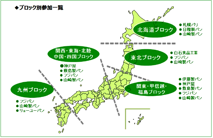 協力会社は、伊藤製パン(株)、(株)神戸屋、(株)札幌パリ、敷島製パン(株)、白石食品工業(株)、日糧製パン(株)、フジパン(株)、山崎製パン(株)、(株)リョーユーパンの9社。