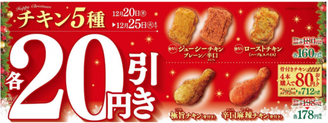 ミニストップnews|クリスマス期間限定チキン5種20円引きセール実施