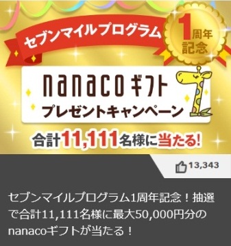 (株)セブン&アイ・ホールディングス(東京都千代田区、井阪隆一社長)は、グループ横断のロイヤルティプログラム「セブンマイルプログラム」の1周年を記念して、6月1日(土)から「セブンマイルプログラム1周年感謝キャンペーン」を実施する。キャンペーンではnanacoギフト100円~5万円分を合計1万1111名にプレゼントする。