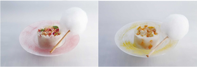 1つ目は6月26日(水)以降、ゆかたを購入すると、先着300名に銀座三越4階の「カフェ フレンチ&デセール ボン ボヌール」のスペシャルメニュー無料チケットを進呈する。7月1日(月)~8月31日(土)の期間中、購入したゆかたを着て来店すると、「ゆかた限定スペシャルメニュー」が無料となる。また、チケットがなくてもゆかたで来店すると、税込価格1620円で注文できる。