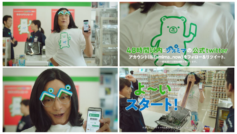 このTVCMは7月5日(金)8時5分頃と7月13日(土)11時40分頃、それぞれ1回放映する。キャンペーンは、このTVCM放映から48時間の間に、ファミリーマート公式Twitterアカウント(@famima_now)をフォローして、対象のキャンペーン告知ツイートをリツイートすると、抽選でファミチキなど人気商品のファミペイ無料クーポンが最大10万名に当たるというもの。ユーザーのリツイートによって、ファミペイを広報してもらう。