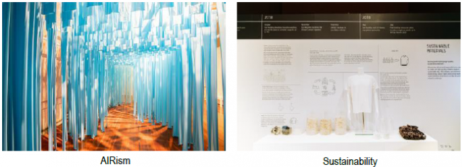 革新的な技術や素材を活用した「新しいジーンズ」の開発を目指すジーンズ専門の研究開発施設「ジーンズイノベーションセンター」、国連難民高等弁務官事務所(UNHCR)とのグローバルパートナーシップといったユニクロのサステナビリティの取り組みの一環を紹介する専用のゾーンも設けた。