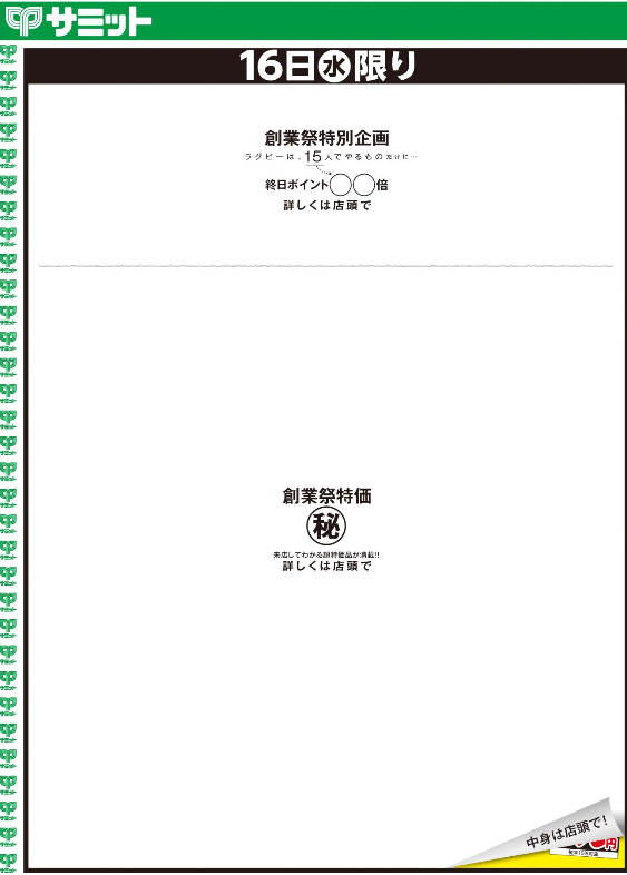 サミット(株)(東京都杉並区、竹野浩樹社長)は、「白紙チラシ」を2年ぶりに復活させ、10月16日(水)に実施した。