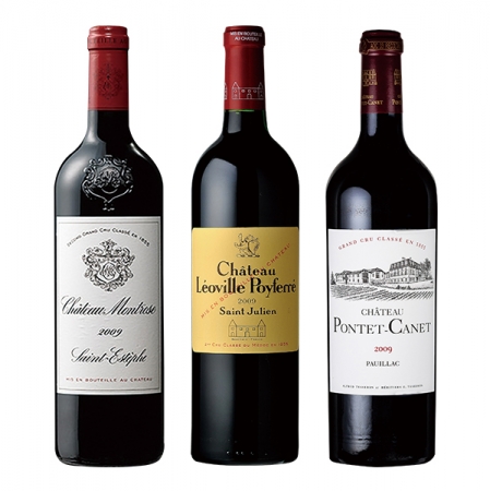 「ボルドー格付3本セット」は、世紀のグレートヴィンテージである2009年産で、ワイン業界で最もしんらい信用の高い評価基準のパーカーポイント100点満点を獲得したボルドー格付ワインです。