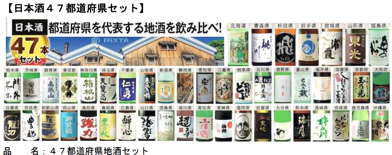 ⑴全国の都道府県から1本ずつ、計47本の日本酒が楽しめる「47都道府県地酒セット」を販売する。販売期間は1月1日(水・祝)~1月5日(火)、本体価格5万5800円。