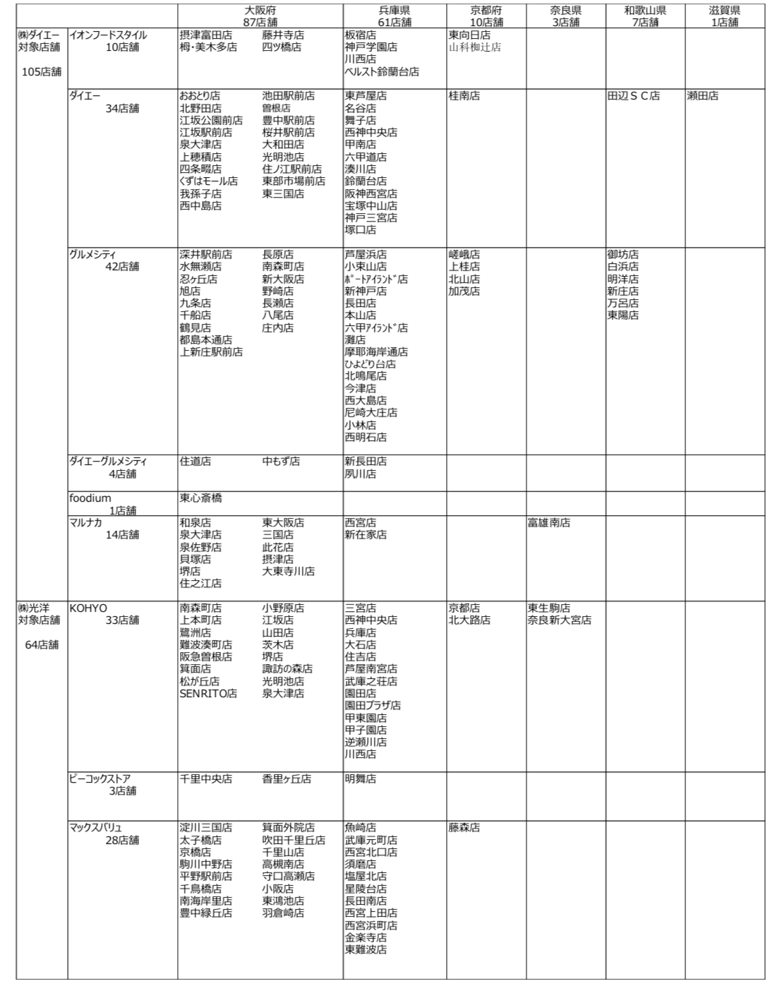 (株)ダイエー(兵庫県神戸市、近澤靖英社長)と(株)光洋(大阪市西区、平田炎社長)は、3月1日に光洋がダイエーの子会社となって、一体となった事業運営をスタートさせる。これまでに、2019年3月に(株)山陽マルナカの近畿地域14店舗をダイエーが、マックスバリュ西日本(株)の8店舗を光洋がそれぞれ承継している。