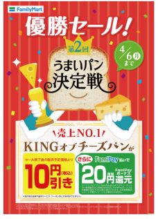 優勝商品は、3月31日(火)からそれぞれのブロックで再発売される。また、優勝を記念して、3月31日(火)から4月6日(月)までの1週間、優勝商品が10円引きとなる「優勝セール」を開催する。ファミリーマートのバーコード決済「FamiPay」で購入すれば、さらに20円相当のFamiPayボーナスが還元される。