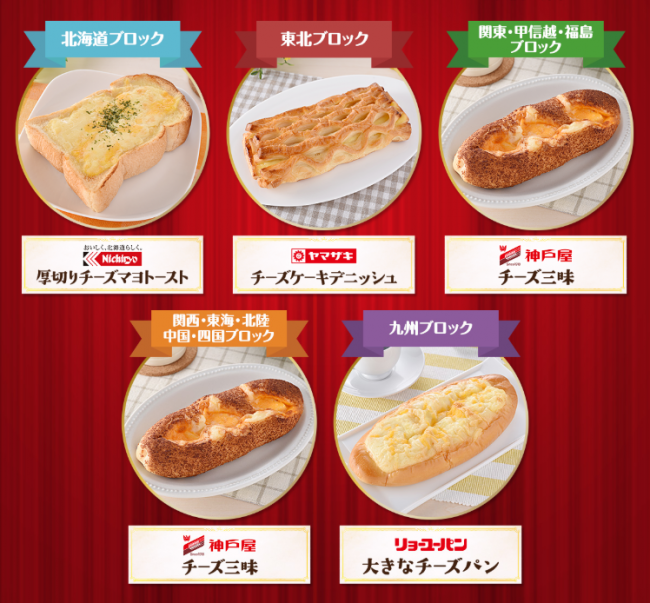 東北ブロックは山崎製パンの「チーズケーキデニッシュ」(128円)、関東・甲信越・福島ブロックと関西・東海・北陸・中国・四国ブロックは神戸屋の「チーズ三昧」(138円)が優勝した。
