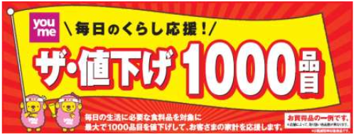 (株)イズミ(広島県広島市、山西泰明社長)は6月1日(月)から、毎日がお買い得!「ザ・値下げ1000品目」を実施する。毎日の生活に欠かせない食料品1000品目を対象に、従来価格から最大3割程度値下げして販売する。