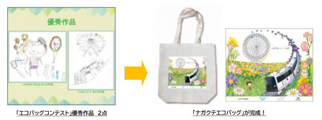 ナガクテエコバッグは、8月に実施した「“ながくてエコのまち”エコバッグコンテスト」で選出された優秀作品を2点をもとに作成したもの。市内の保育園や幼稚園の園児たちよりデザインを募集した。優秀作品をもとに長久手市文化の家の創造スタッフにより、自然豊かな長久手をイメージするエコバッグを完成させた。