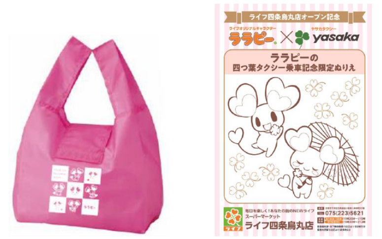 ライフ四条烏丸店はJR西日本不動産開発ヤサカビルへのテナント出店になる。これを機に、「クローバー」をモチーフとしている両社が、「ニューファミリー層へのブランディング」の一環として、「ララピーの四つ葉タクシー」を構想した。
