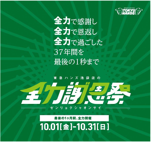 東急ハンズnews|池袋店10/31閉店で売り尽くしセールなど「全力謝恩祭」開催