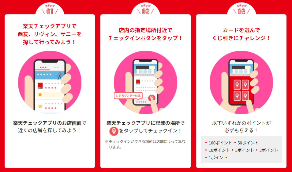 「楽天ポイント増し増し祭」では、「楽天チェック」以外にも、すでに西友に導入されているスマホ決済サービス「楽天ペイ(アプリ決済)」、レシート画像を送付すると「楽天ポイント」を獲得できるサービス「Rakuten Pasha」のキャンペーンも併せて実施する。