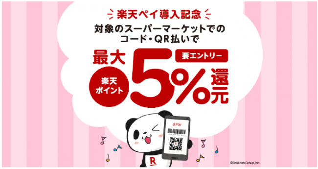 楽天ペイメントでは、「サミットストア」をはじめ、今月中にスマホアプリ決済サービスを開始したスーパーマーケット加盟店を対象に、12月1日(水)~12月31日(金)の期間、「最大5%還元キャンペーン」を実施する。エントリー期間中にキャンペーンページからエントリーし、キャンペーン期間中に対象店舗で「楽天ペイ」アプリのコード・QR決済で支払いをすると、「楽天ポイント(期間限定ポイント含む)」が最大5%付与される。ただし、このキャンペーンはスーパーマーケットが対象であるため、衣料品店である「コルモピア」は対象外となる。