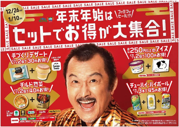 (株)ファミリーマート(東京都港区、細見研介社長)は12月26日(日)~2022年1月10日(月)の期間、全国のファミリーマート約1万6600店で、大型割引キャンペーン「年末年始はセットでお得が大集合!ファミマがセール!?」を実施する。ゴールデンウィーク期間中に実施した「ファミマがセール!?」の第2弾で、年末年始の期間中にさまざまな割引を実施する。