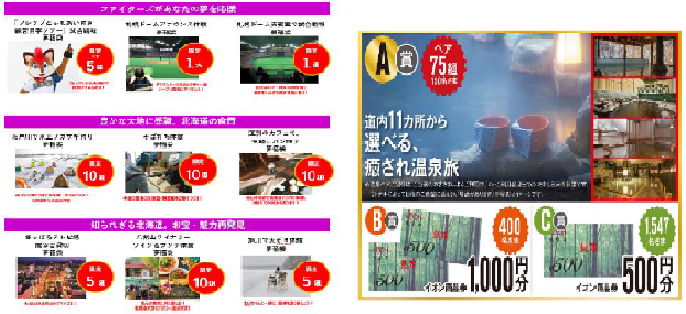 また2022年にちなんで2022名に道内温泉旅行やイオン商品券が当たる「イオンで運だめし!」や、毎年好評のWEB販売限定の体験型福袋「北海道 夢福袋」を用意するほか、12月31日(金)~1月4日(火)期間限定で「WAON POINT10倍」を実施する。