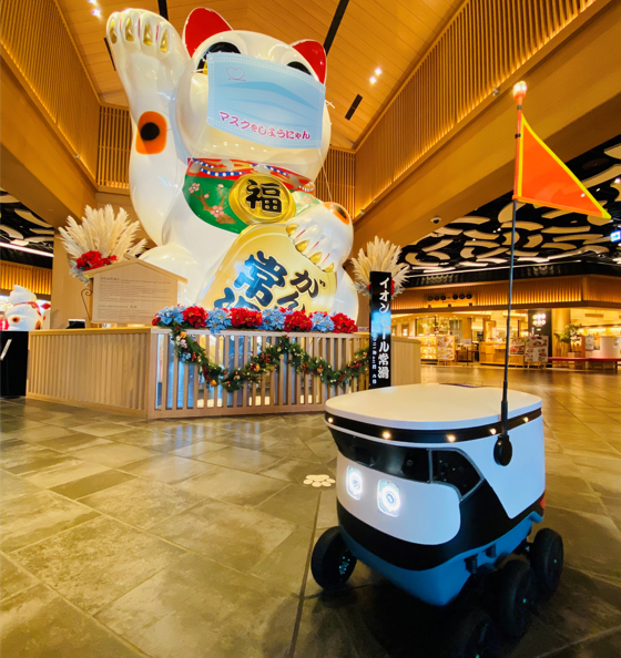 イオンモール(株) (千葉県千葉市、岩村康次社長)は、三菱電機(株)と提携し、1月11日(火)からイオンモール常滑において、米国Cartken社の自律走行ロボットによる商品配送サービスの実証実験を開始した。