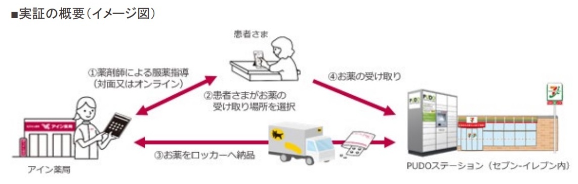 (株)アインホールディングス(札幌市白石区、大谷喜一社長)は、(株)セブン‐イレブン・ジャパン(東京都千代田区、永松文彦社長)、ヤマト運輸(株)(東京都中央区、長尾裕社長)、Packcity Japan(株)(東京都千代田区、田中資也社長)と合意し、セブン‐イレブン店舗に設置されたオープン型宅配便「PUDOステーション」を利用した処方箋医薬品の受け取りサービスについて、新たな実証実験を開始する。