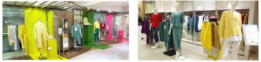 とくに西武池袋本店とそごう横浜店ではブランド横断でカラーの比較ができるカラーファッション特設売場を開設する。通常は各ブランドが独立した売場になっているため、一つの場で複数ブランドの商品を比較することに課題があった。色を軸に取り揃えることで複数ブランドのカラーを比較したいというお客のニーズに応える。