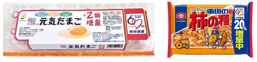 第2。特別増量商品やオリジナルパッケージ商品などを展開する。60 周年だからできる特別商品は60周年シンボルマークが目印。