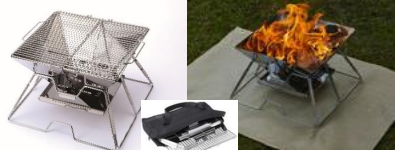 「たき火もできるバーベキューコンロ(税込み3207円)」は、コンパクトに折りたたむことができる。