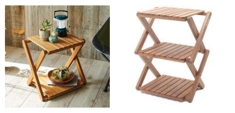 「木製ラック 2段(税込み2178円)」「木製ラック 3段(税込み2728円)」はナチュラルなテイスト。簡単にたためて室内でも野外でも使える。