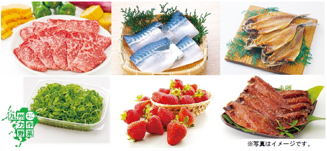 九州産黒毛和牛もも肉やニビシあご白出汁を使った塩干物、九州力作野菜®の取り組みでつくられた九州産きざみねぎ、今が旬の九州産いちごなど、九州・沖縄・山口の「うまいもの」を集めた。
