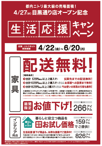 また、家具の配送料無料と一部商品の期間限定値下げは6月20日(月)まで継続して実施していく。