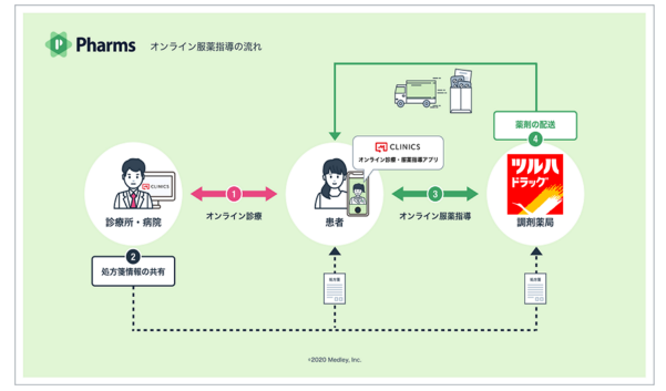 (株) ツルハホールディングス(札幌市、鶴羽順社長)の子会社である(株)ツルハ(札幌市、八幡政浩社長)は、(株)メドレー(東京都港区、瀧口浩平代表取締役社長)の提供するかかりつけ薬局支援システム「Pharms」を導入し、同社の調剤薬局全343店におけるオンライン服薬指導サービスの提供を5月16日から開始する。