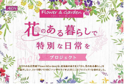 イオン北海道(株)(札幌市白石区、青栁英樹社長)は 6月19日(日)から道内の「イオン」「イオンスーパーセンター」「マックスバリュ」 40店舗の花売場「Flower & Garden」において、HBCラジオ「ハンザキラジオ」とともに「“花のある暮らしで特別な日常を”プロジェクト」を開始した。