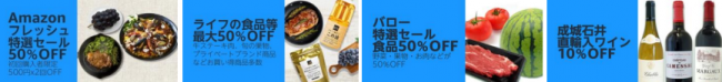 「プライムデー」当日は、Amazonフレッシュでは高級ステーキ肉、ミールキット、野菜、果物、刺身、米、日用品などの対象商品が50%OFF、ライフネットスーパーでは、ライフ一押しのプライベートブランド商品が最大50%OFFになるほか、旬の果物や野菜、牛ステーキ肉などの目玉商品を多数用意する。バローネットスーパーでは、旬の野菜や果物、ステーキ肉などの生鮮食品を中心に対象商品が50%OFFに、成城石井ネットスーパーでは、成城石井のバイヤーが厳選し直輸入した20点以上の高品質なワインが10%OFFになる。