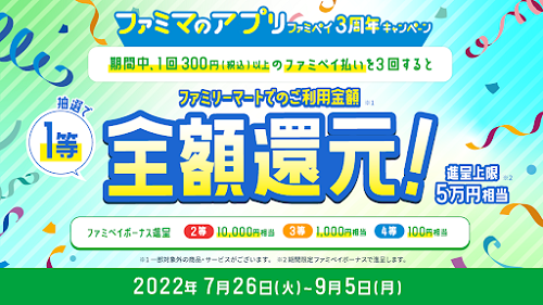 ファミマnews|ファミペイ3周年キャンペーン第2弾は7/26~9/5展開