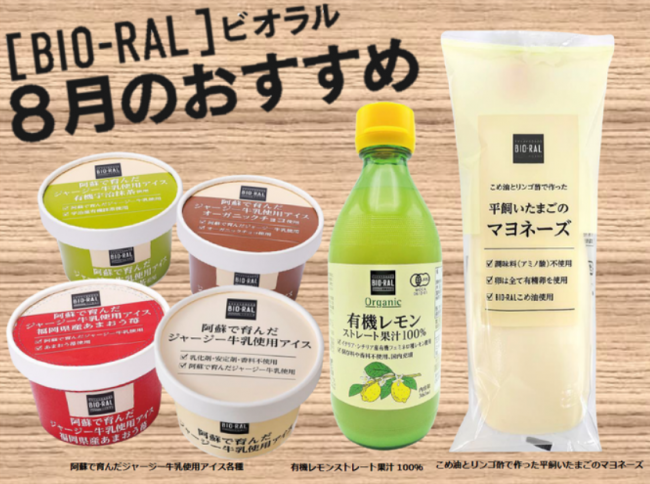 (株)ライフコーポレーション(東京本社:東京都台東区、大阪本社:大阪市淀川区、岩崎高治社長)は、プライベートブランド「BIO-RAL(ビオラル)」商品を、毎月お試し価格やポイントプレゼントでお得に提供している。8月は首都圏ライフ124店舗で、「こめ油とリンゴ酢で作った平飼いたまごのマヨネーズ」「有機レモンストレート果汁100%」「阿蘇で育んだジャージー牛乳使用アイス」などを含む15品目で実施する。