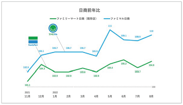 プライベートブランド「ファミマル」は2021年10月19日に発売を開始して以後、プライベートブランドの日商前年比において、毎月(10カ月)連続で100%超えを記録した。またファミリーマートとしても既存店日商売上前年比でも、同期間において10カ月連続100%超えを記録している。