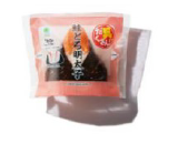 明太子和えと醤油たれ和えの2種類の鮭とろを具材に使用したおむすび。具材量が多く、一口目から鮭とろを感じられ食べ応えがある。158円。