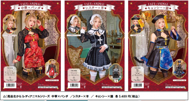 またコスチュームは定番から、クール、カワイイまで好みのデザインを取り扱う。カチューシャ同様、アニマルテイストを取り入れて人気のデザインを掛け合わせた“レディアニマル”シリーズは、写真・画面映りを意識して、顔・首周りのデザインにこだわって開発した。